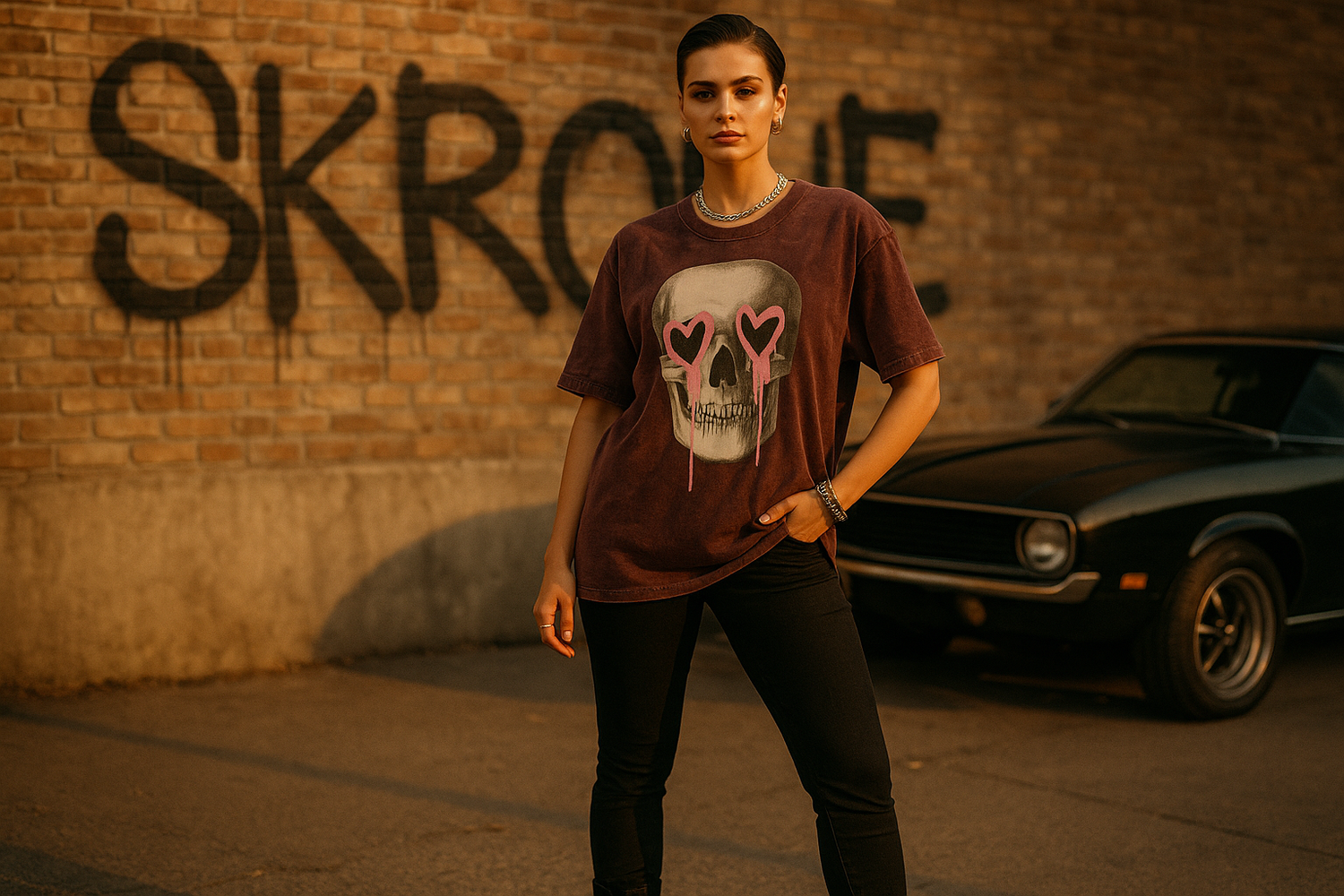 Skrone Acid Wash Dead Serious-Love Edition Tee (Oversized Fit)